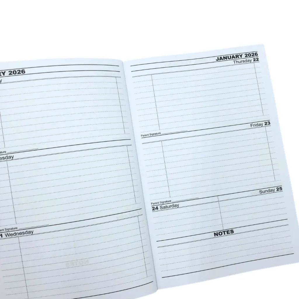 - The school diary collection also includes A5 Student Diary 4-days-to-view and A5 Student Diary 2-days-a-page