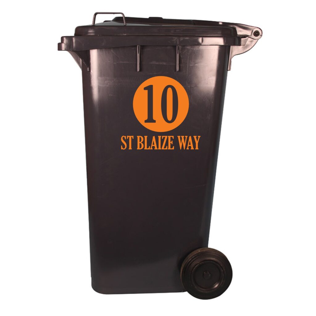 Our personalised wheelie bin stickers make your black bin far more attractive !